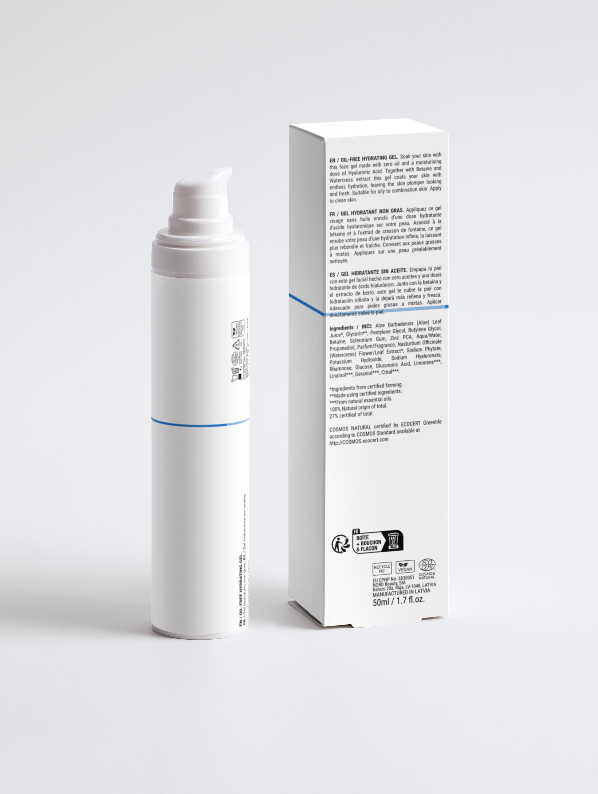 Moisturizing face gel made with zero oil and a generous dose of Hyaluronic Acid. Together with Betaine and Watercress extract this gel coats your skin with endless hydration, leaving the skin plump and fresh. Suitable for oily to combination skin.